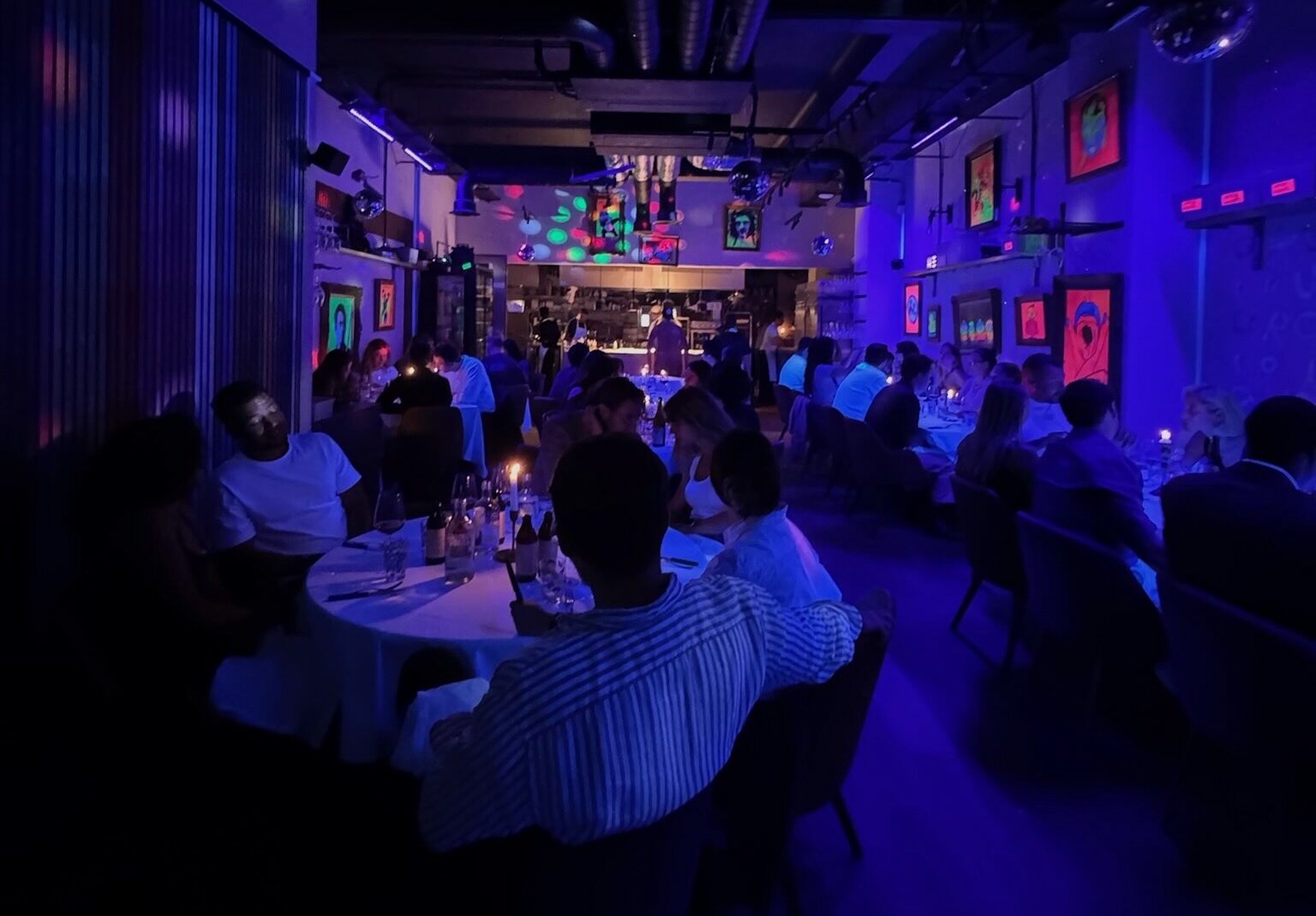 Midway through, the room explodes with black lights. Smoke creeps across the floor, lasers spear the haze, and neon paints the walls. The effect is undeniably fun, part basement rave, part restaurant. It is also a structural problem. When you hit the crescendo at the interval, where do you go next? The remaining courses cannot compete with the theatre, and the energy begins to dip into repetition.
